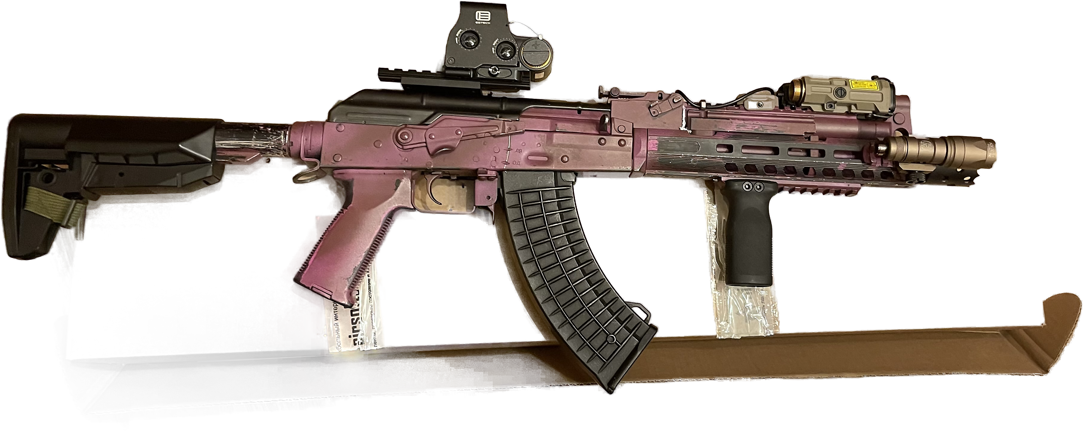 Какой то еотек для работы с пнв, еотек огл от вадсн и сырфаер от вадсн для сикуби, ну и стильные розовые накладки для магазинов