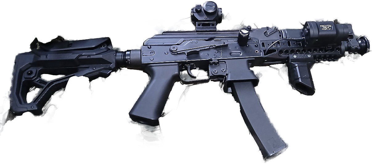 Прицел Aimpoint Micro T1, приклад GL Core, Цевьё Б-10, рукоять РК-6, фонарь Клещ-2П, модератор Дайса